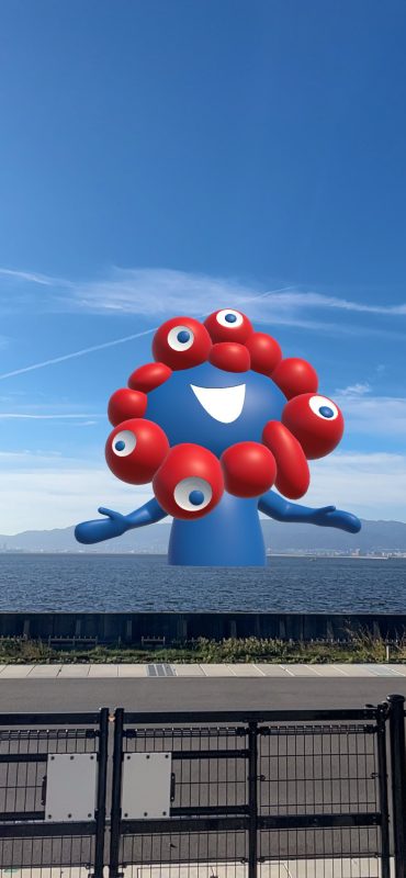 ARを使った【巨大ミャクミャクが出現!】の新しいバージョンが、西側の海に出来てたのでパチリ☆