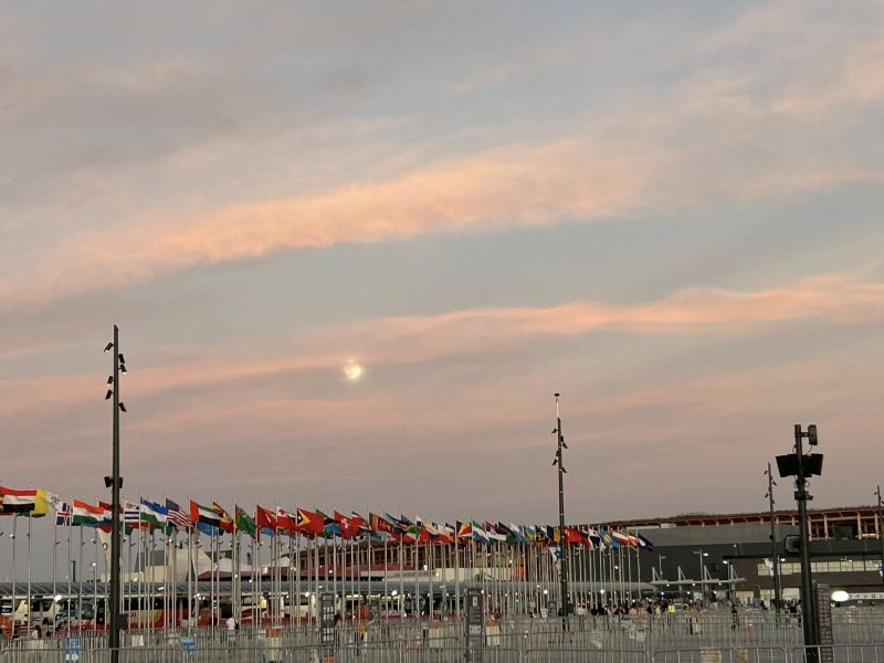 雲がかかっているタイミングの写真ですが、国旗と大屋根リングと中秋の名月のコラボは良い感じです♪